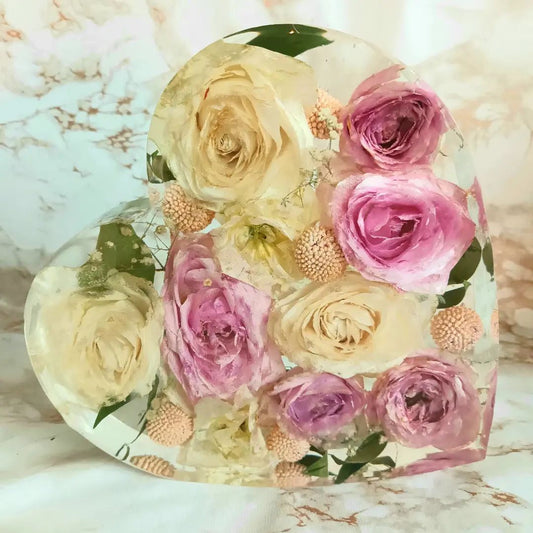 Wedding Flowers PreservationPreserved Resin Heart a Keepsake Gift Custom made Bridal Bouquet memorial flowers special occasion anniversary