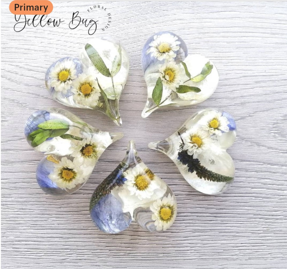 These hearts are a good way to preserve tiny flowers or petals.